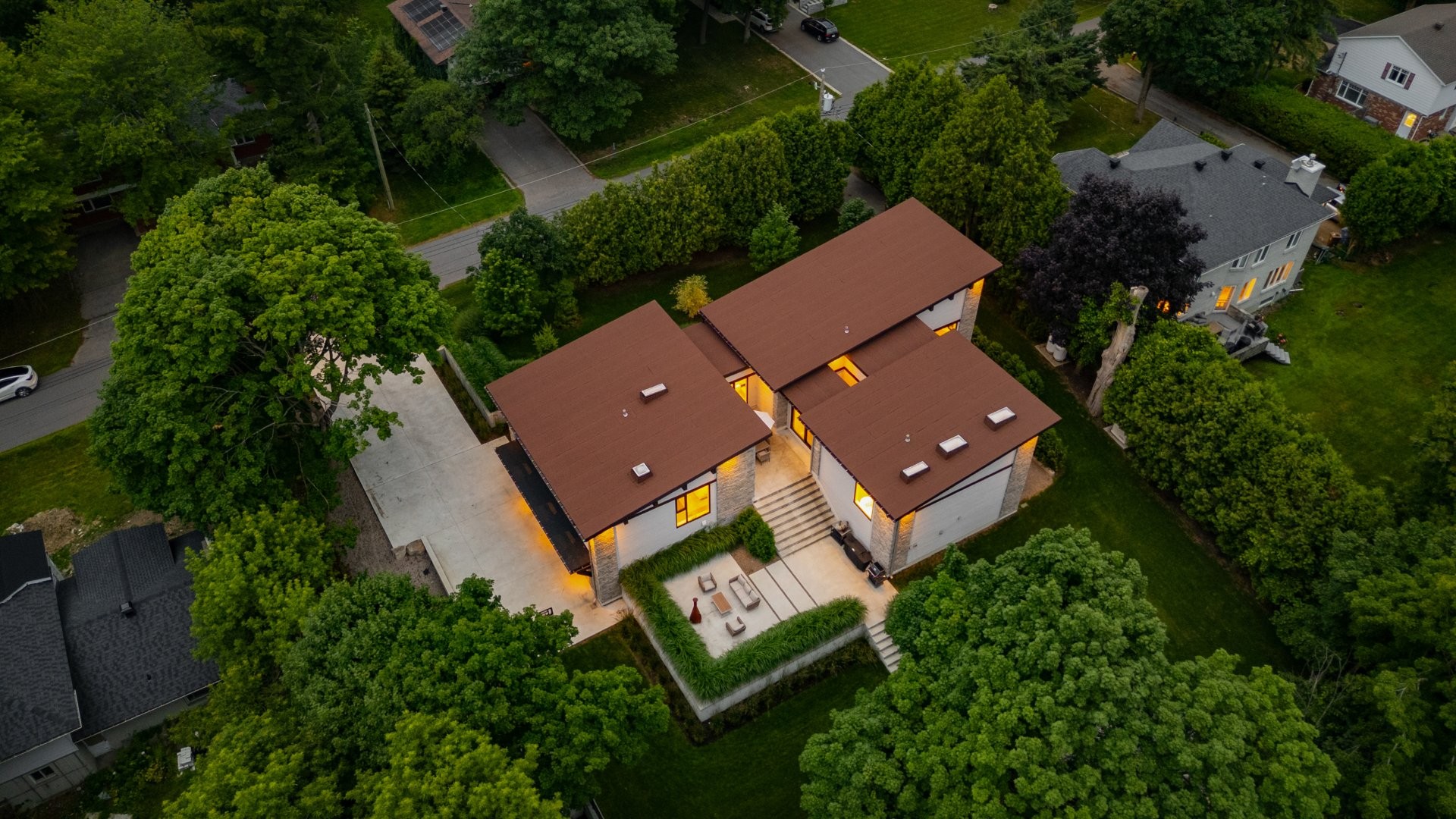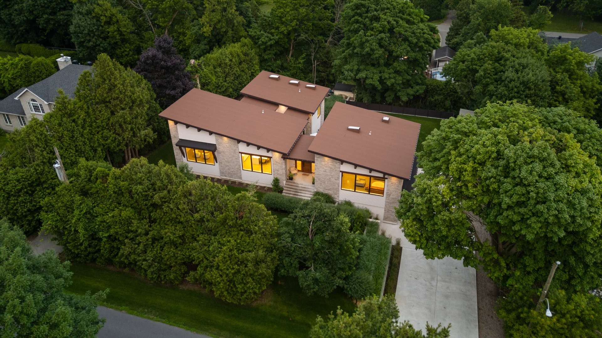 Cette magnifique maison, construite en 2022, est idéalement située dans un cul-de-sac sur un vaste terrain d'angle au coeur de Baie-D'Urfé....