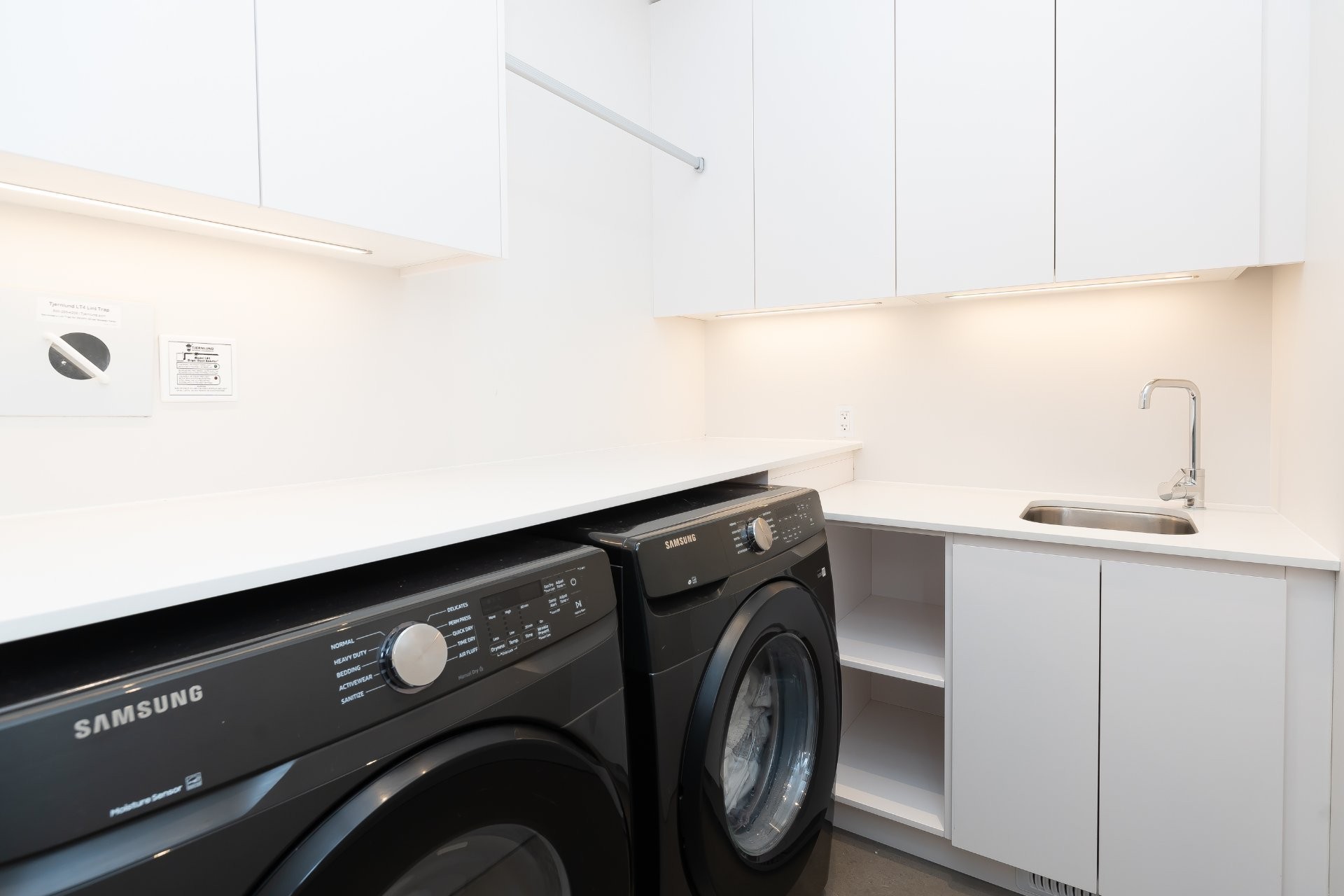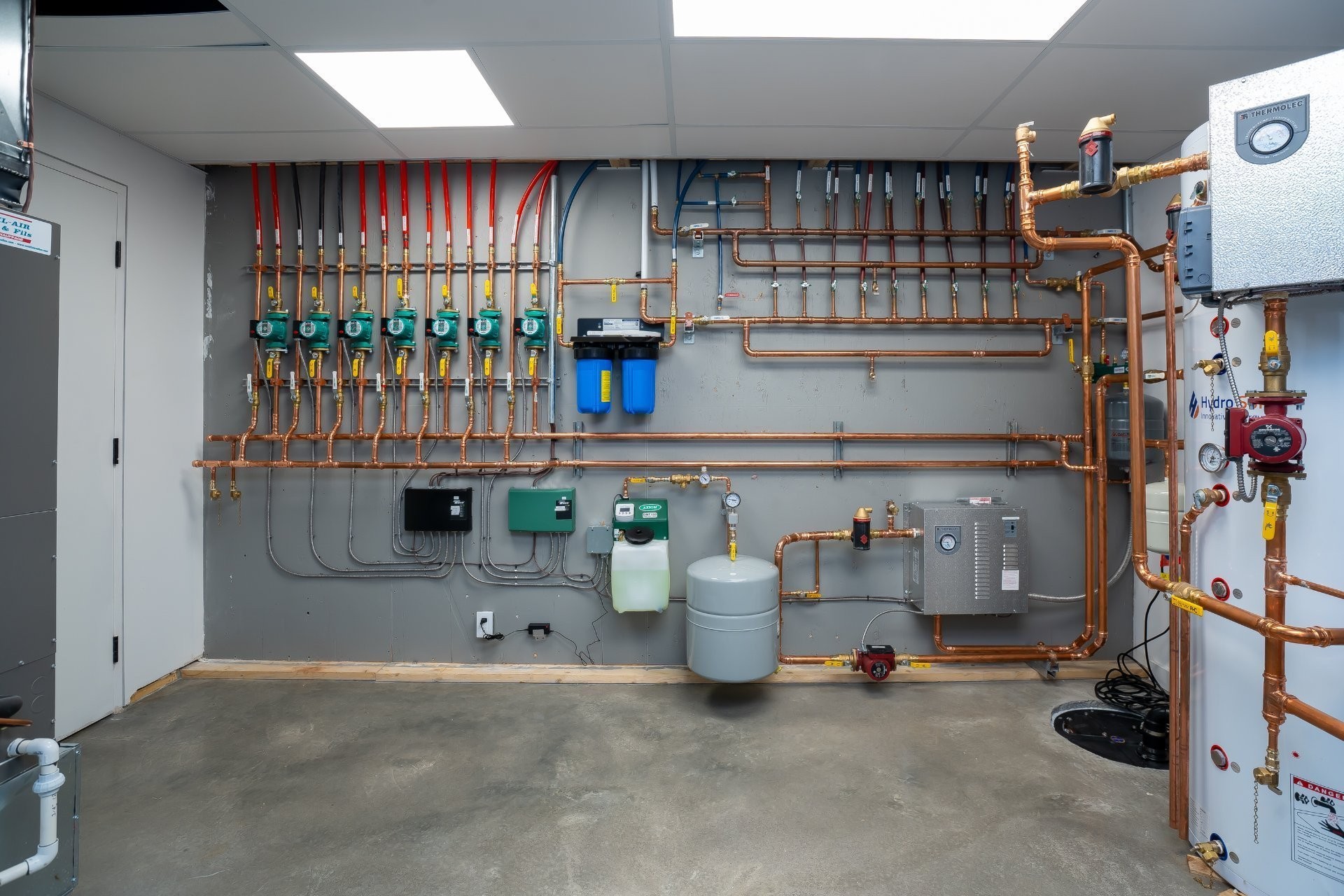 The basement has a spacious play room and 1 additional bedroom with a walk-in closet and ensuite bathroom. The mechanical room is a work of art. The extremely organized and fully labeled plumbing manifold, hydronic heating floor system, 400 amp panel and 24 KW backup generator are on full display. On this level you will find an entrance to the heated 3-car garage and separate work-shop at the back of the garage.