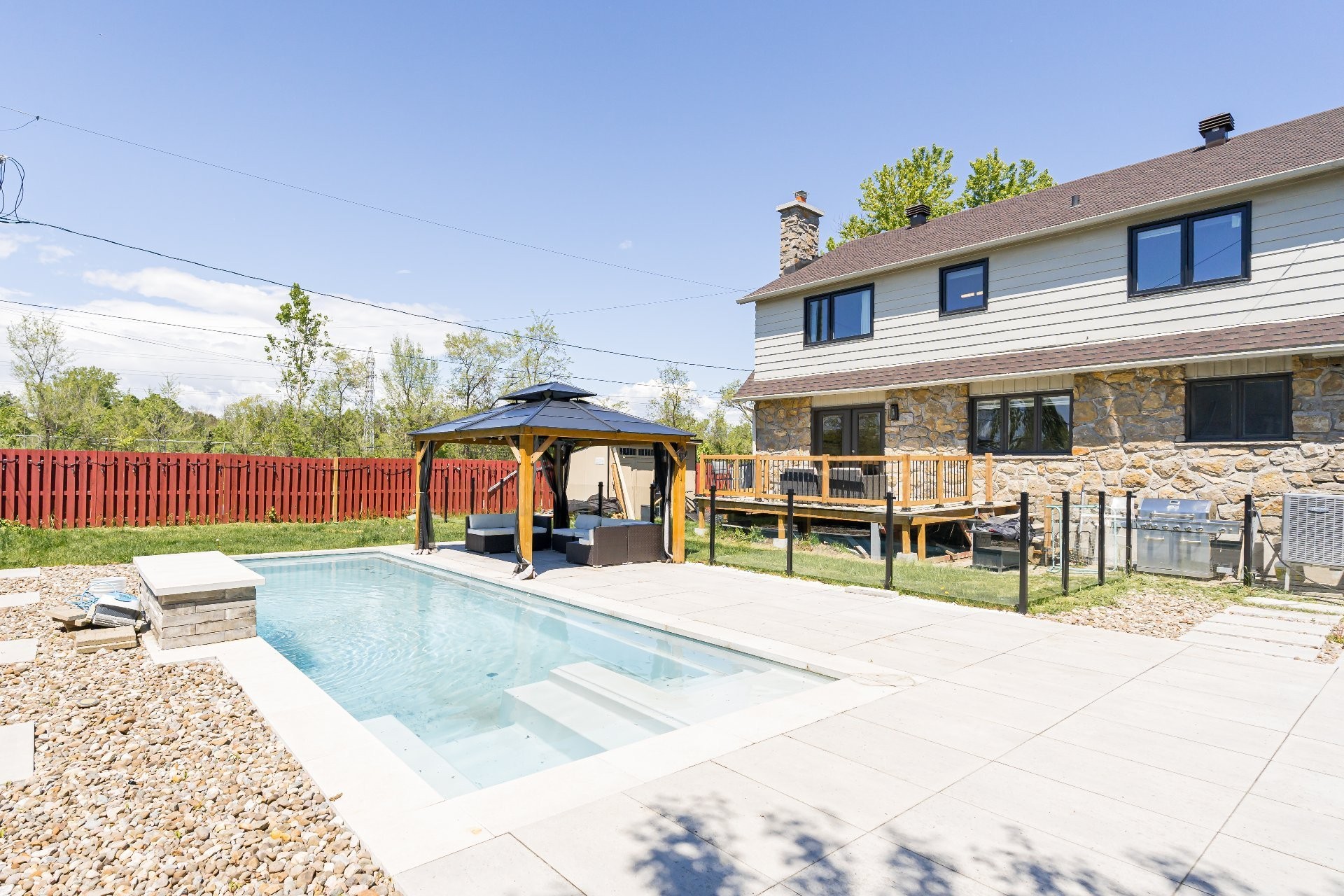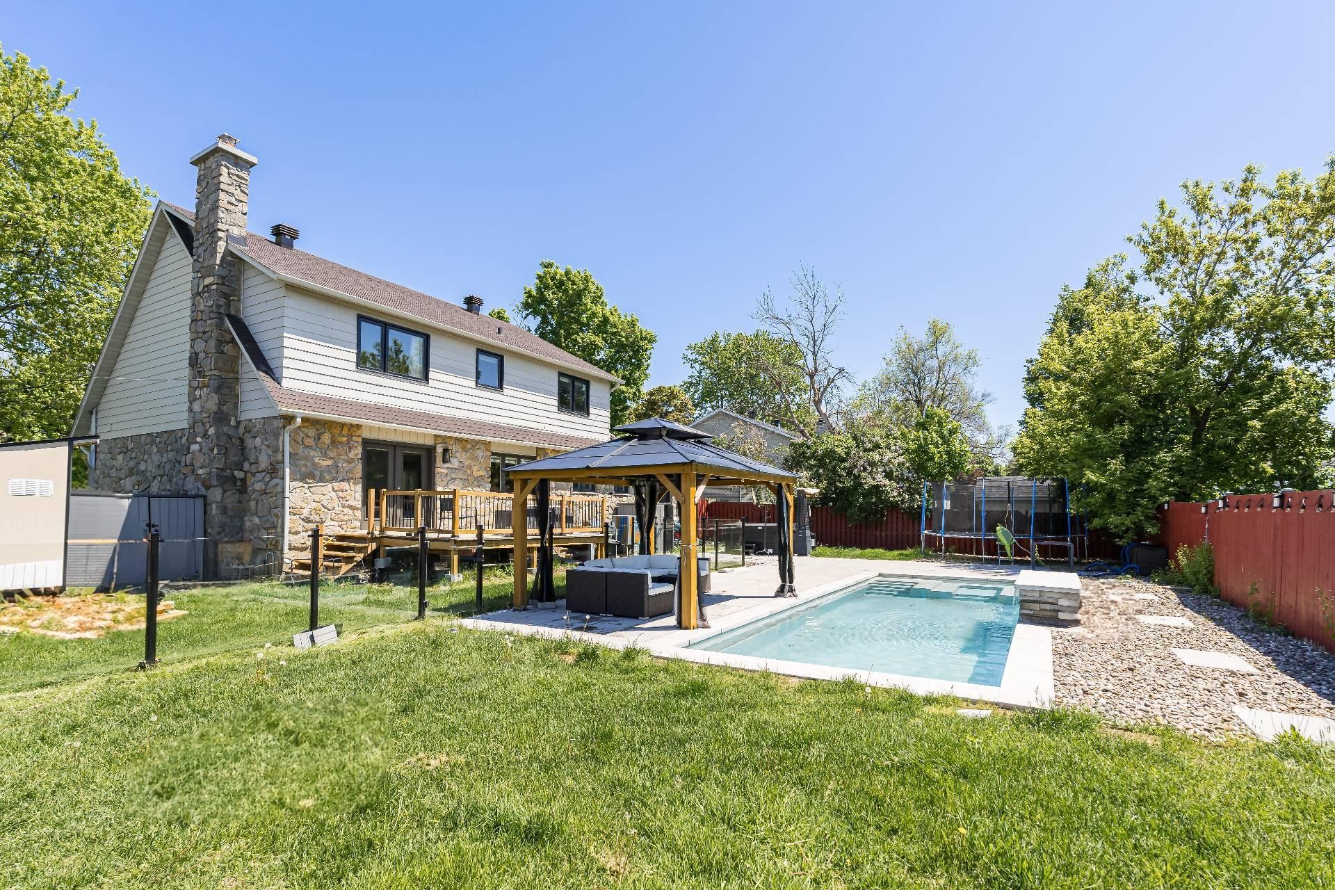 Beautifully renovated home on a corner lot in Beaconsfield South! Featuring 4+1 bedrooms, 3+1 bathrooms, a finished basement and a double garage. The backyard is an entertainer's dream with a large deck and inground fibreglass pool. Fully renovated in 2021 with many upgrades. Steps to Lac St-Louis, train, schools, parks, and amenities with easy access to St-Charles & Hwy 20. Move-in ready!