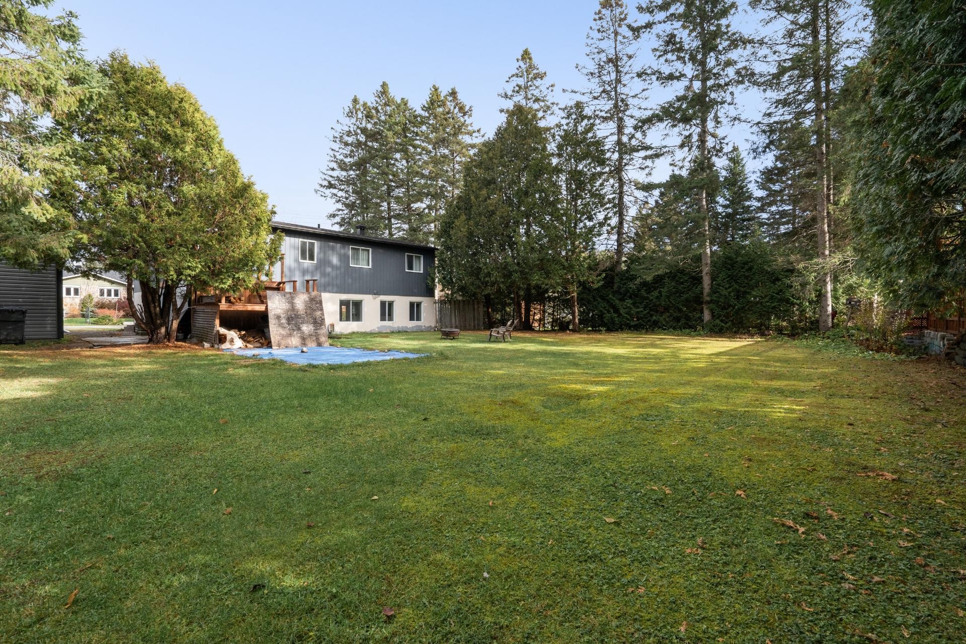 The backyard, surrounded by mature nature, provides a peaceful and private outdoor space. A lovely terrace and expansive grounds allow for the creation of a dining area, lounge space, and outdoor firepit to fully enjoy warm summer evenings.
