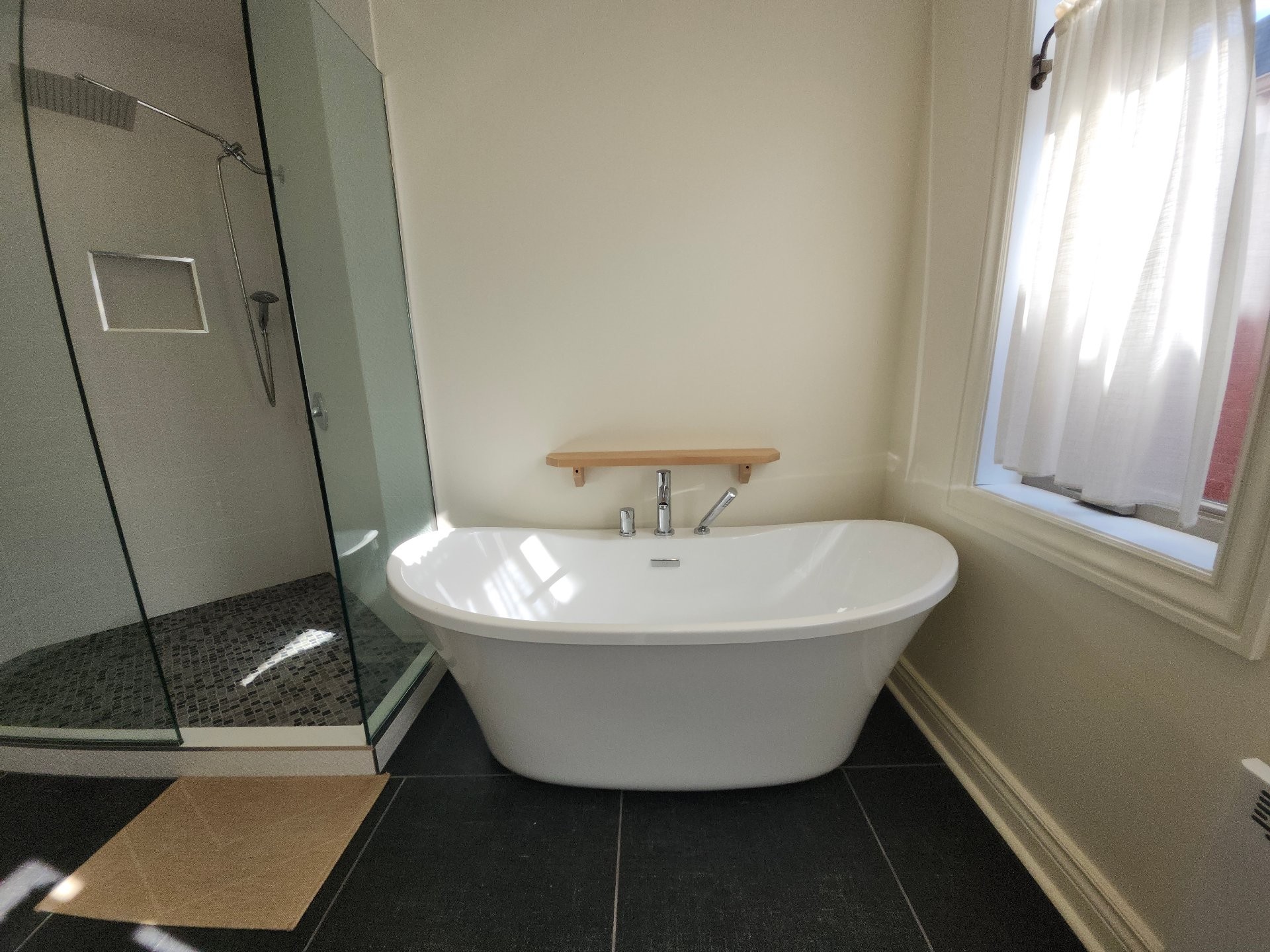 **One full bathroom upstairs, plus a second full bathroom in the basement