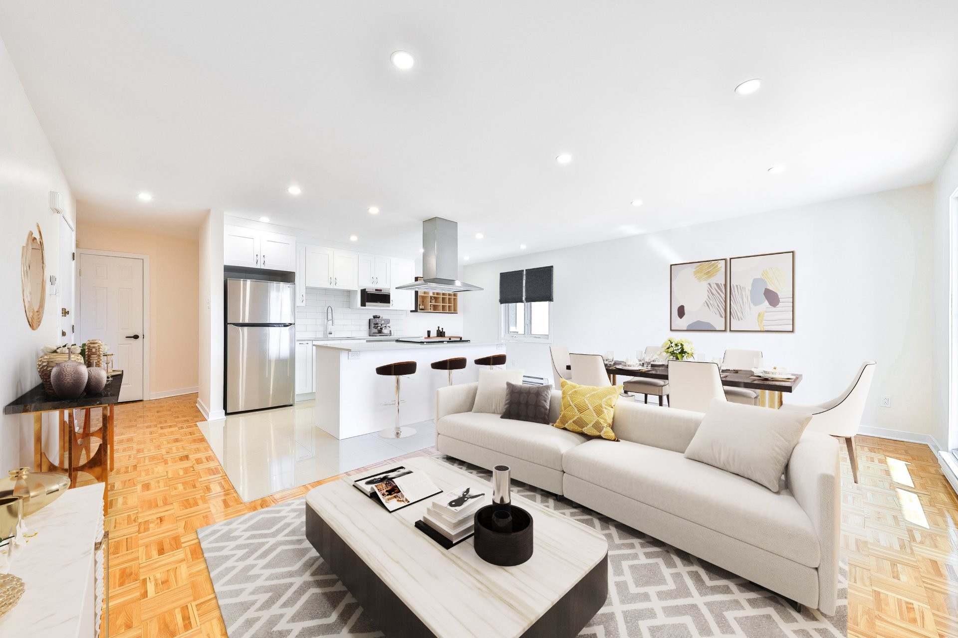Well-maintained 4-plex offering strong appeal for an owner-occupant or investor. Ideally located steps from Costco, major services, transit, and key amenities. The main unit is a large 7½ with a basement, a private wine cellar, two garages. Situated on a quiet roundabout-style street with no through traffic. The property also includes two rented 4½ units on the second floor that generate steady income. The basement bachelor is clean, functional, and fully ready for its next tenant.