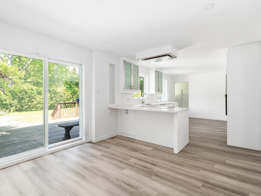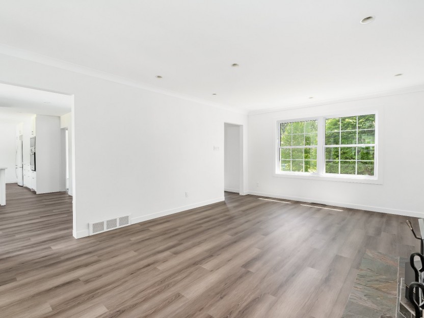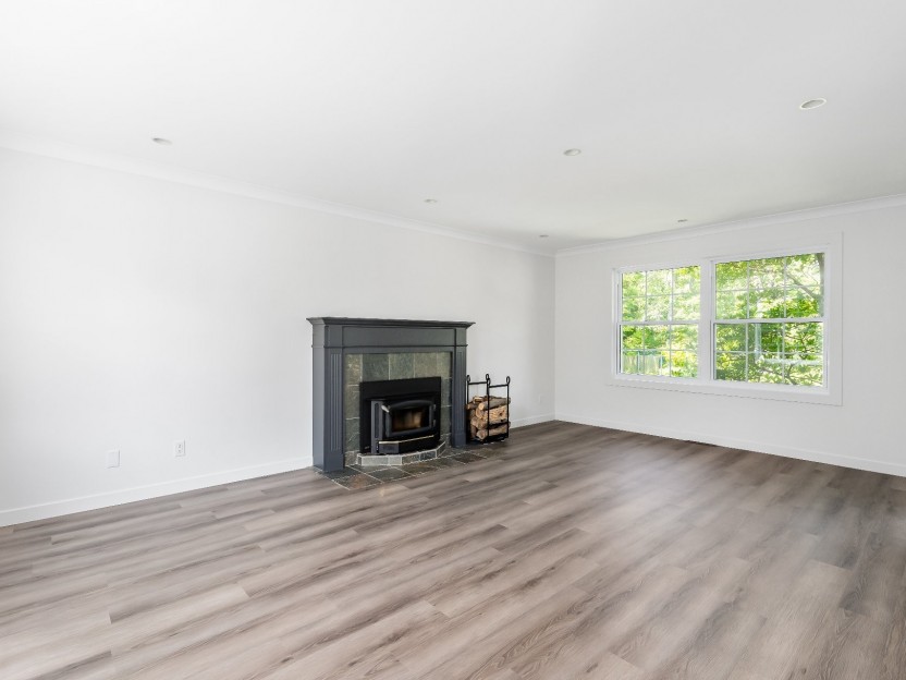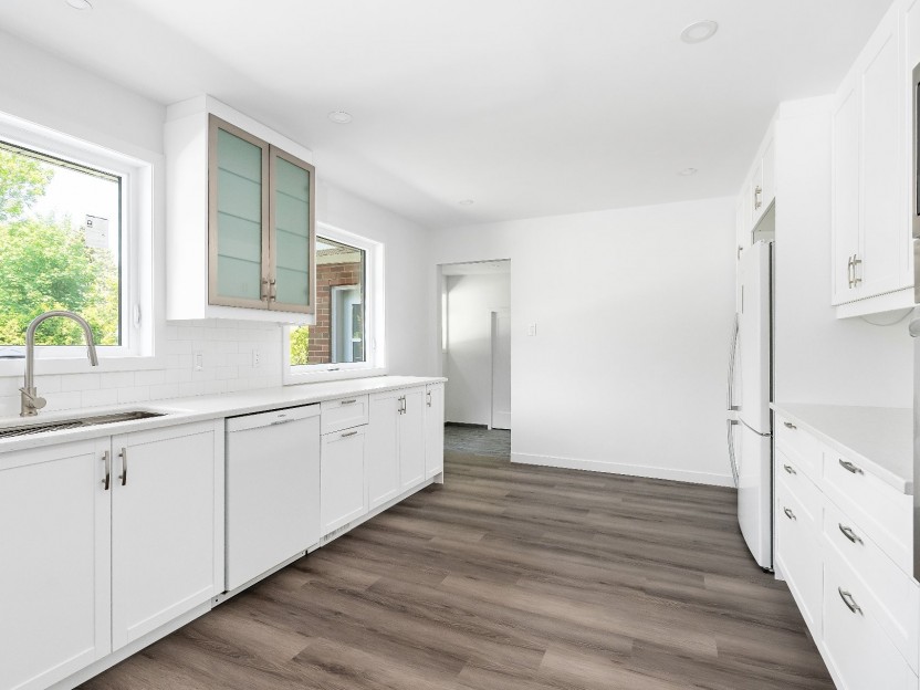 Renovated basement apartment in Lachine featuring large windows that fill the sp...
